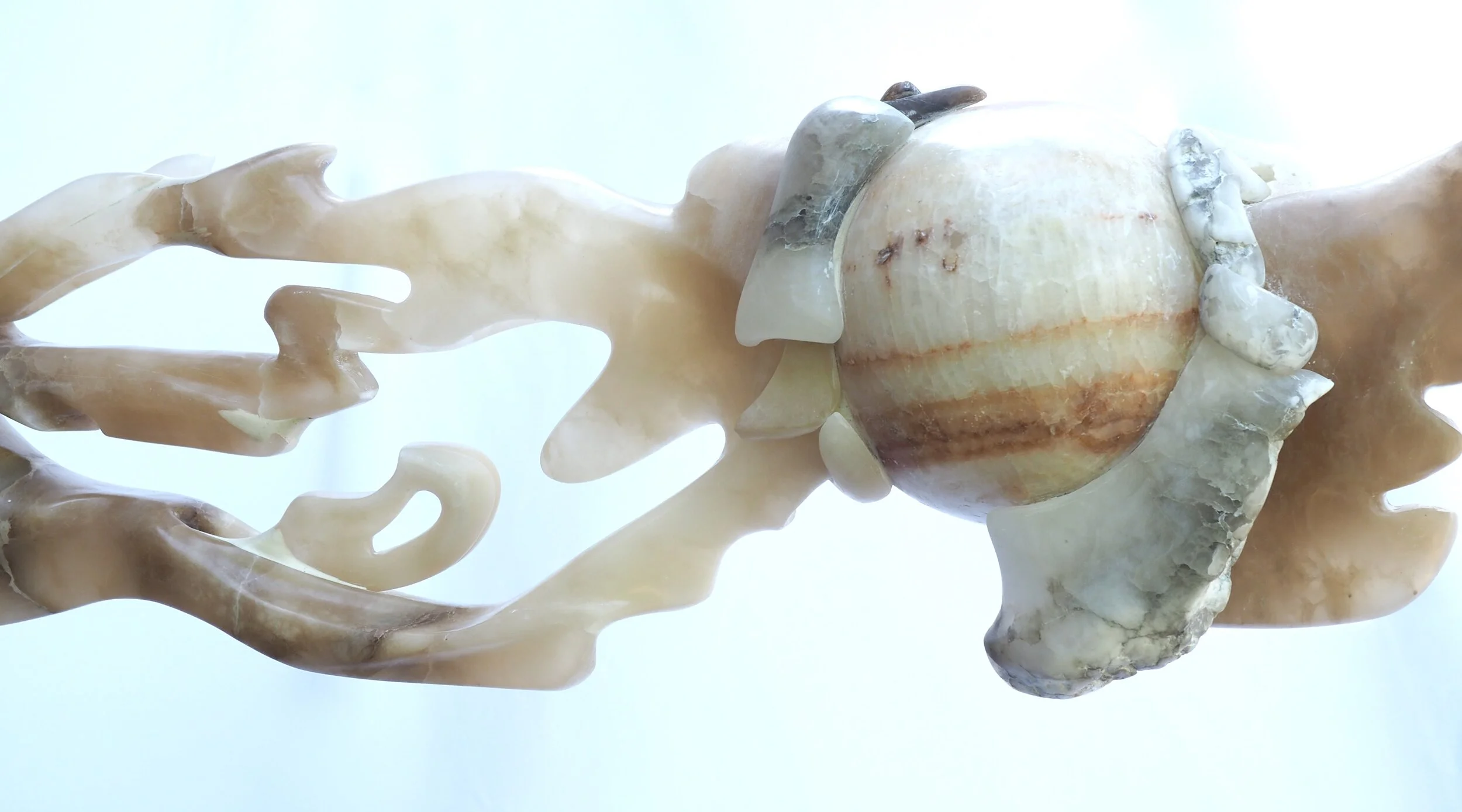 These sculptures offer a glimpse into a trajectory of hope or despair for the human race and the earth. On the one hand we have an image evoking all that flows and streams on the earth and on the other we see a world under water. It’s your choice.